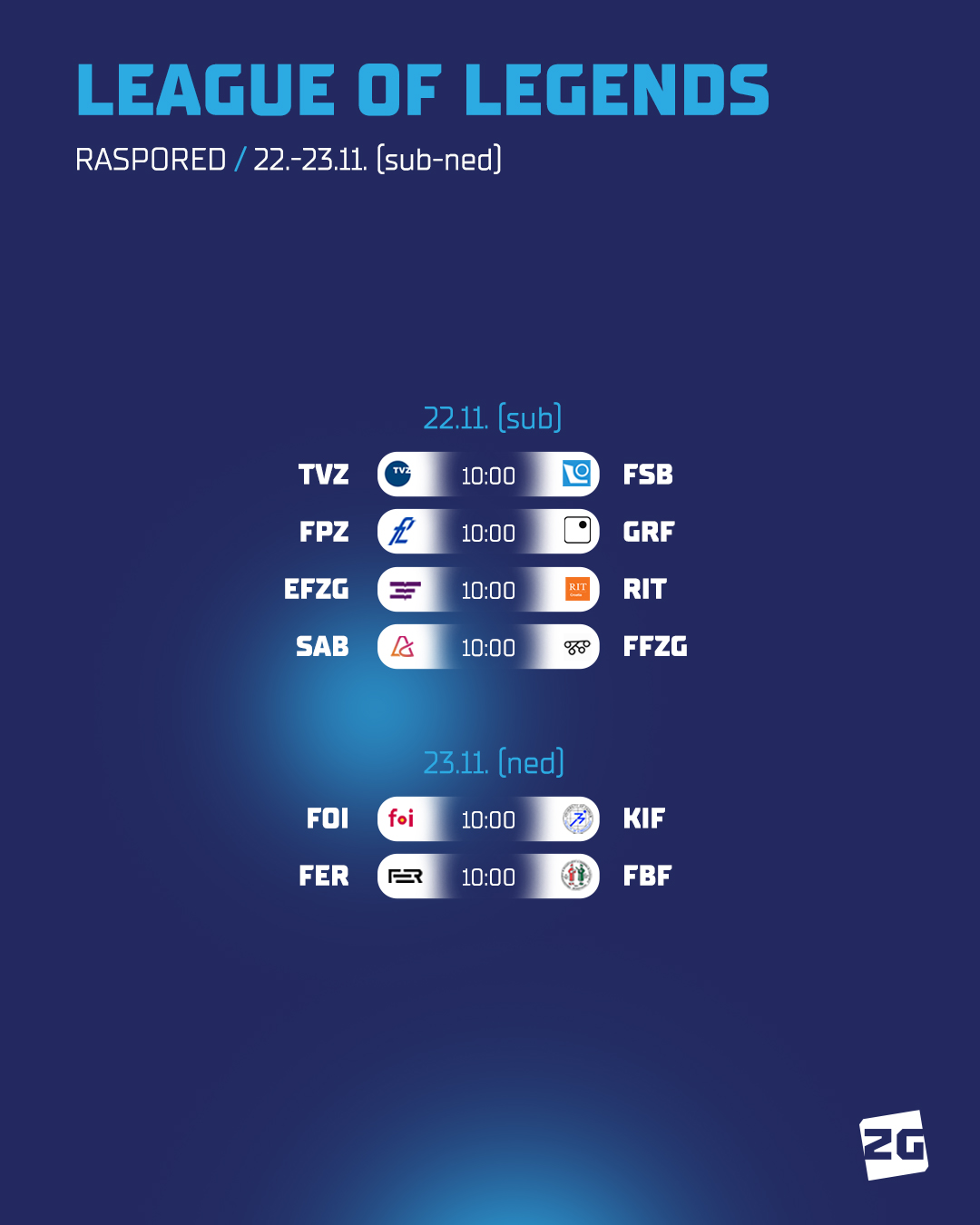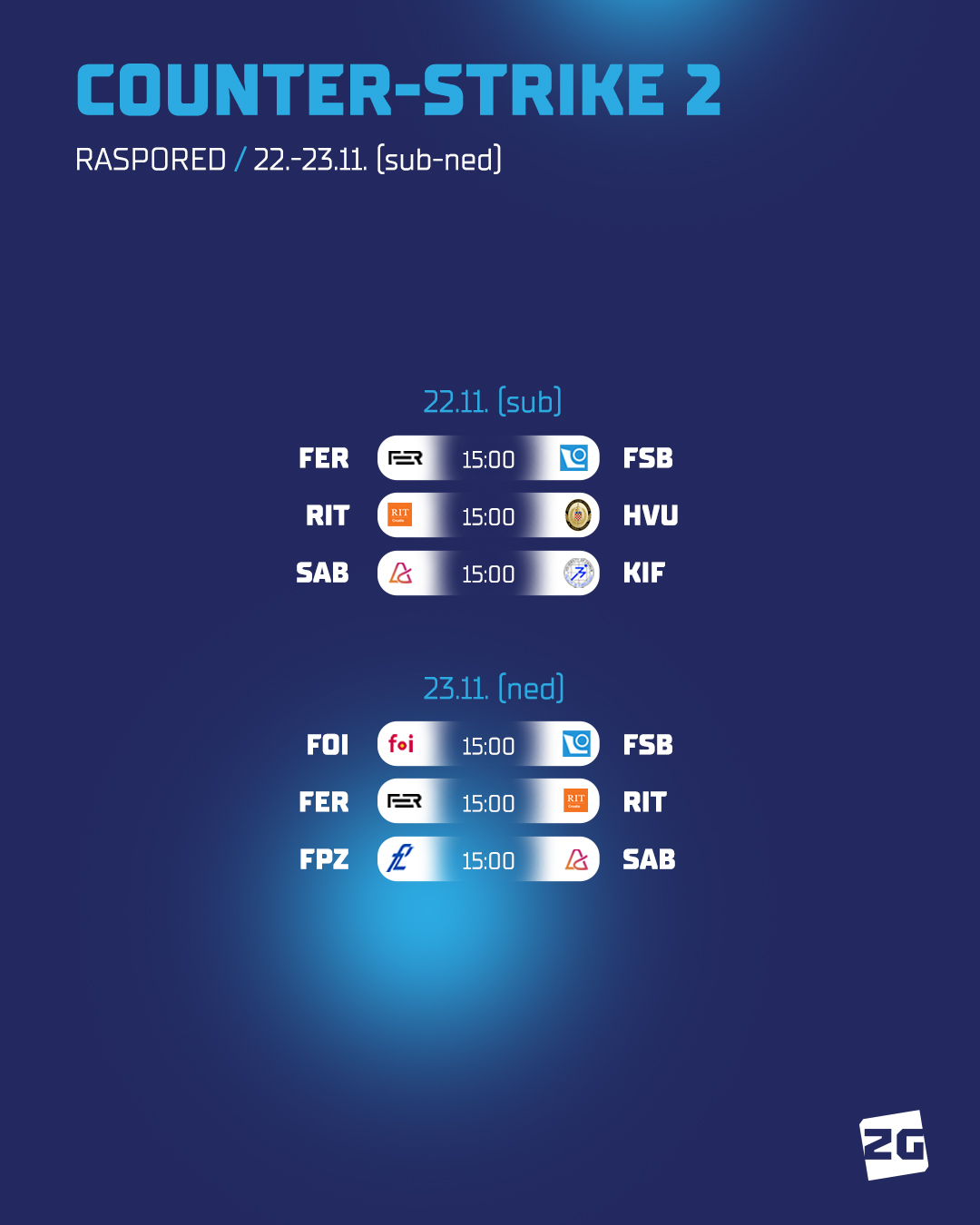Raspored eSport natjecanja za 22.-23.11.