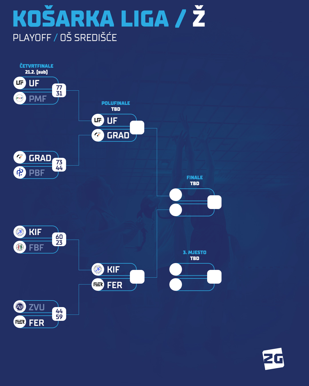 Vrlo uvjerljive pobjede upisale su ekipe UF-a, Građevine i KIF-a čije su pobjede išle i preko 30 poena razlike, pa nas zasigurno očekuju vrlo uzbudljive utakmice polufinala.