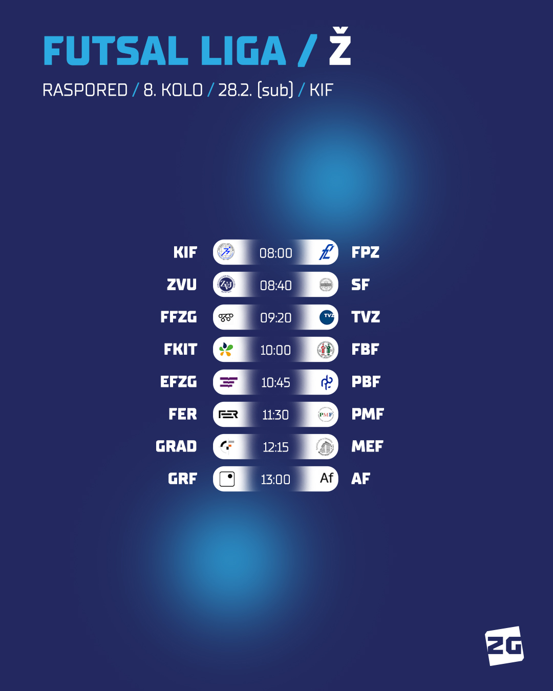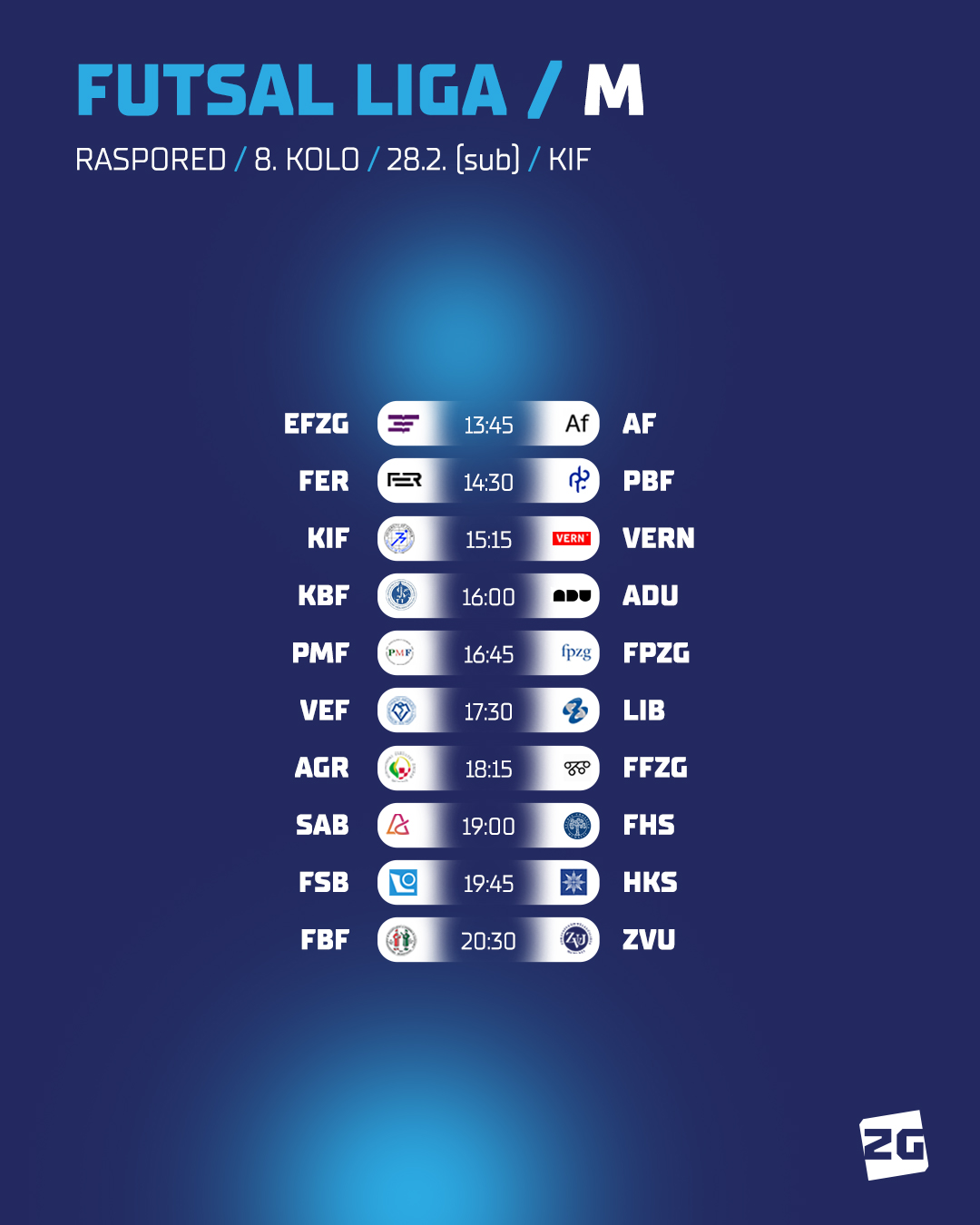 Futsal liga nastavlja sa svojim 8. kolom za studente i studentice, jutarnje termine subote (28.2.) zauzet će susreti studentica, nakon čega studenti nastavljaju popunjavati program dvorane Kineziološkog fakulteta: