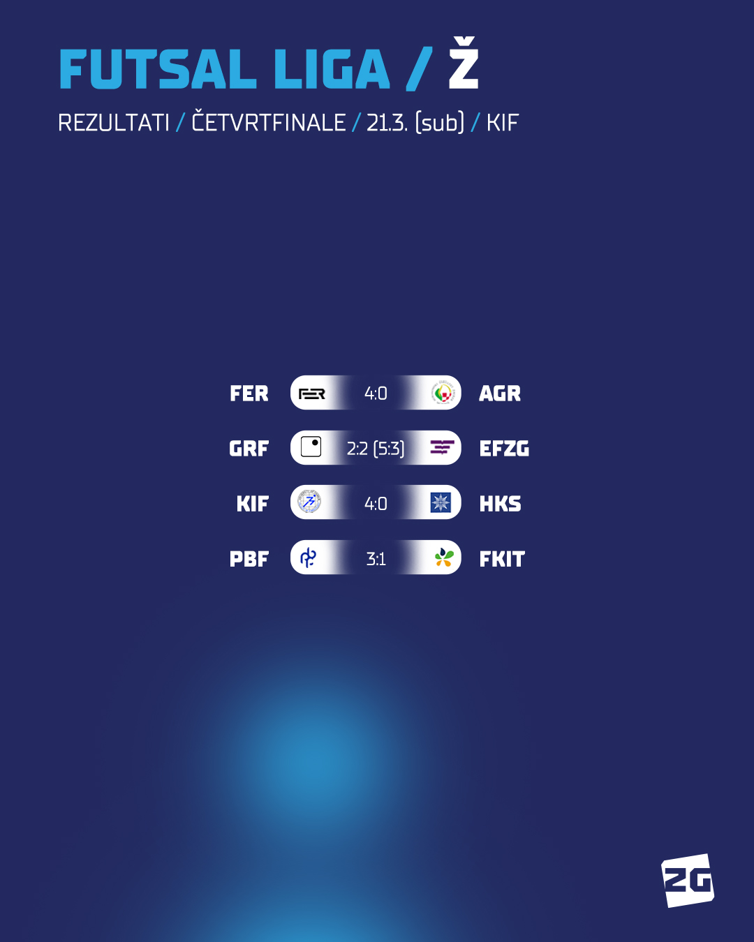 Zanimljiv susret odigrale su ekipe GRF-a i EFZG-a, koji je nakon 2-2 u regularnom vremenu odlučen penalima u kojima su studentice GRF-a bile sigurnije i rezultatom 5-3 osigurale polufinale.
