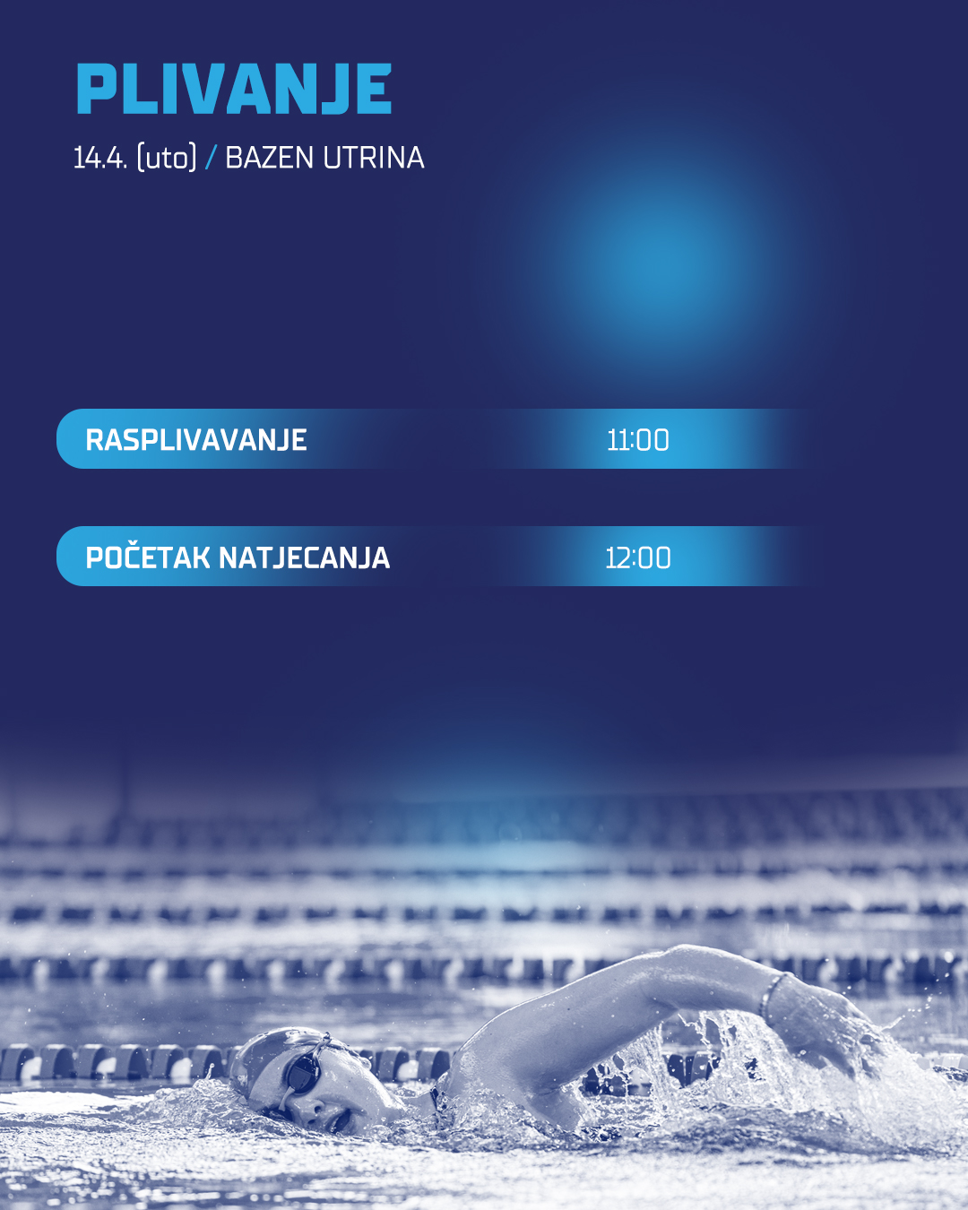 Tjedan započinje u utorak (14.4.) na bazenima Utrine gdje će se održati UniSport ZG prvenstvo u plivanju. Rasplivavanje kreće u 11:00h, a samo natjecanje u 12:00h.