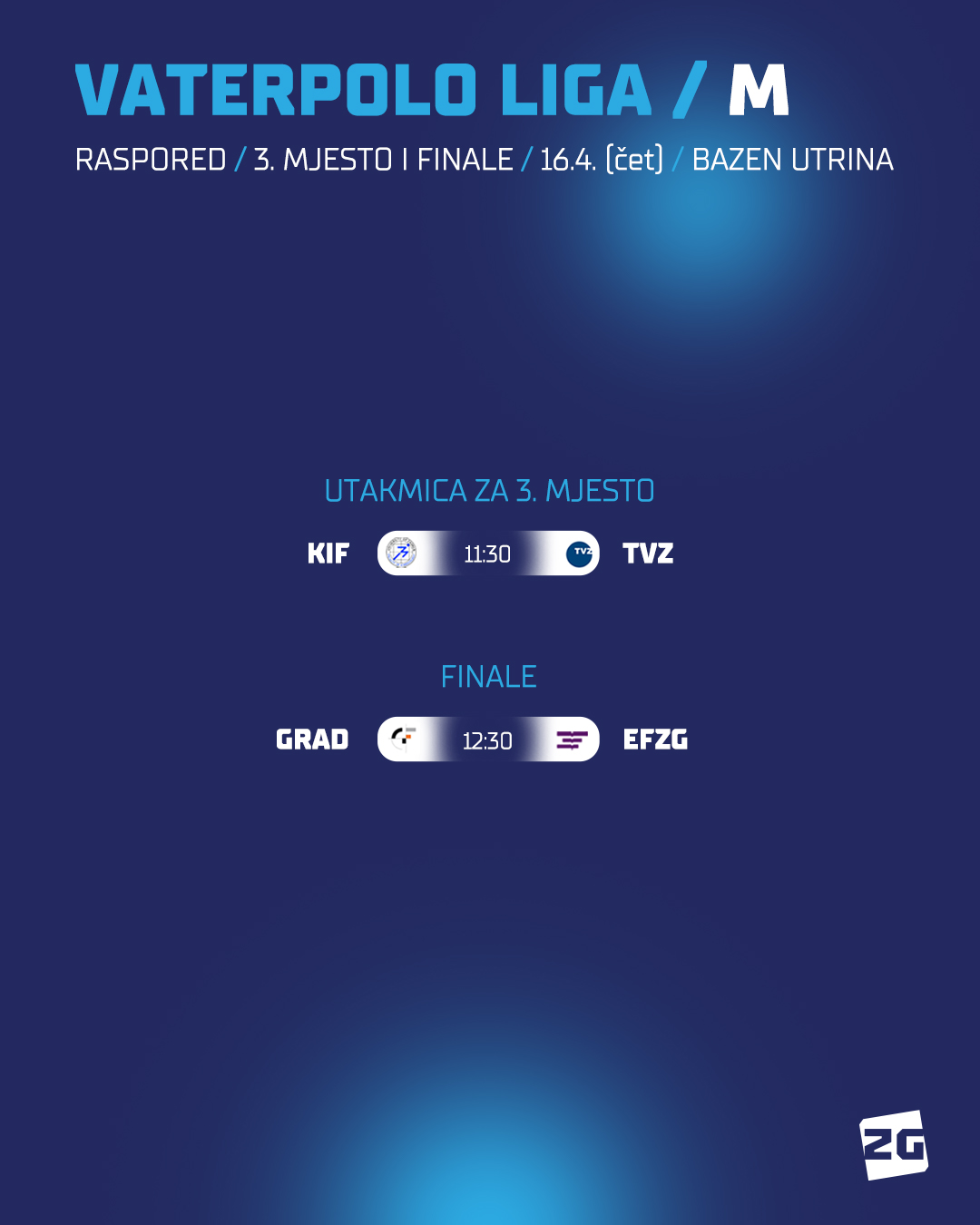 U nastavku tjedna, u četvrtak 16.4., očekuje nas i uzbudljiva završnica UniSport ZG vaterpolo lige. Već poznata lokacija bazeni Utrine, ugostit će finale te utakmicu za treće mjesto.