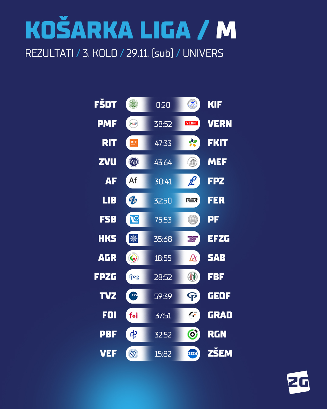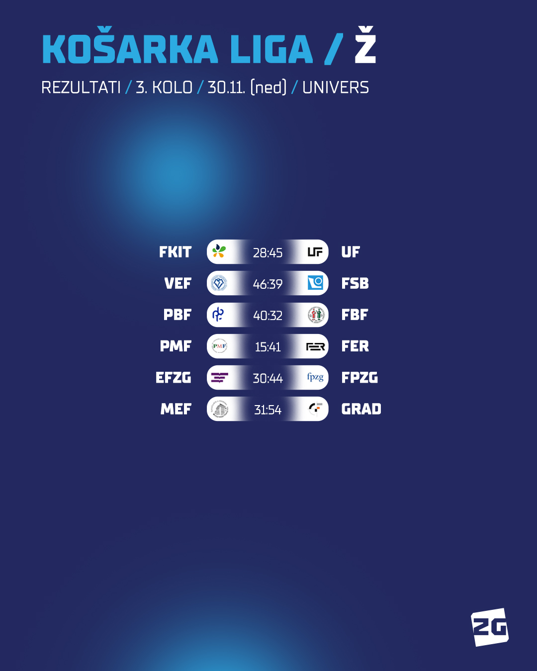 U košarkaškom natjecanju, niti ovog vikenda nije nedostajalo poena i atraktivnih poteza. U muškoj konkurenciji možemo izdvojiti visoke pobjede EFZG-a nad HKS-om (68-35), SAB-a nad ekipom Agronomskog fakulteta (55-18) te ZŠEM-a nad VEF-om rezultatom (82-15). U ženskoj konkurenciji najveću pobjedu ostvarila je ekipa FER-a nad ekipom PMF-a rezultatom 41:15.
