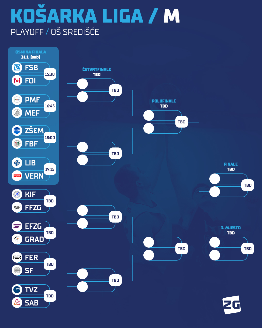 Pa tako košarkaši, nakon grupne faze, nastavljaju put osmine finala na novoj lokaciji: OŠ Središće. Ondje će se odigrati prva 4 susreta osmine finala za košarkaše.