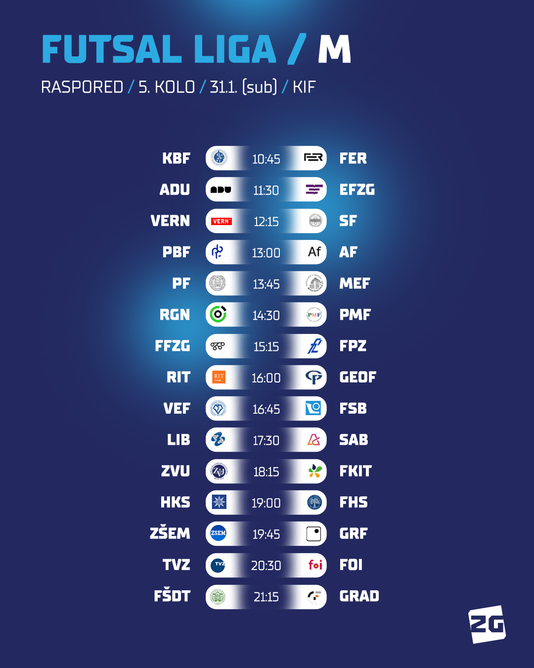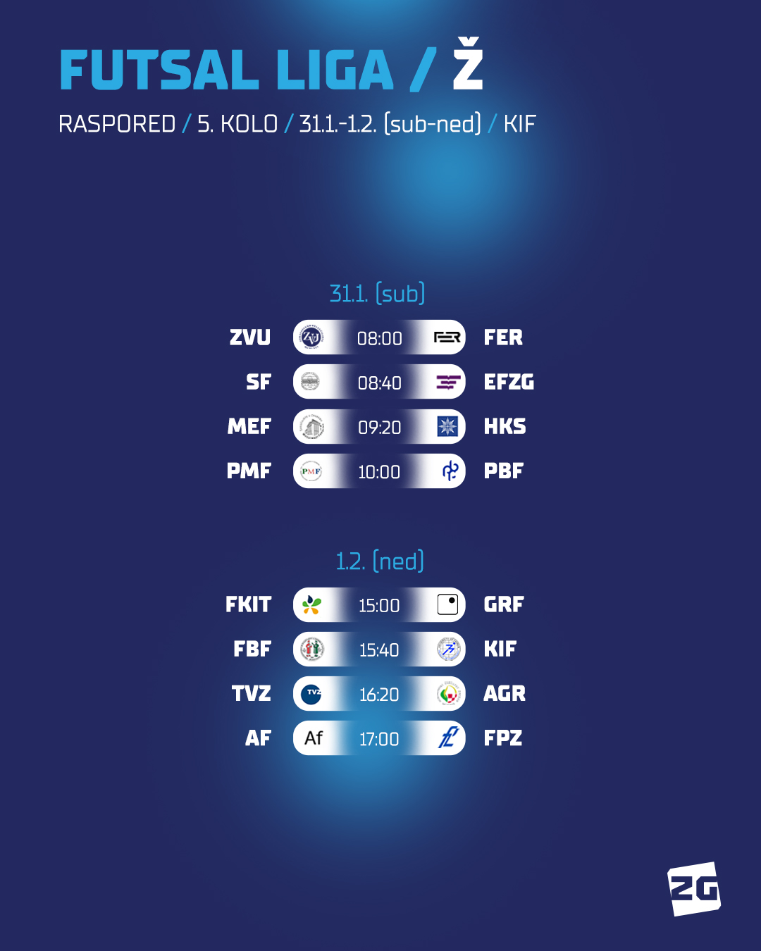 Preostaje nam još najaviti utakmice 5. kola futsal lige za studente i studentice, koje svojom dinamikom neće odudarati od već najavljenih susreta, a uživo ih pratiti možete na Kineziološkom fakultetu: