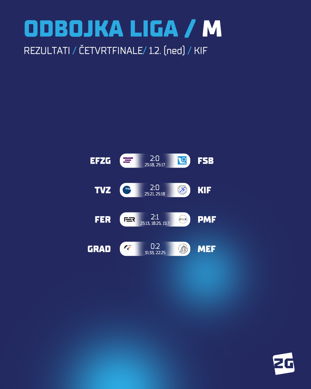 Rezultati četvrtine finala UniSportZG odbojke