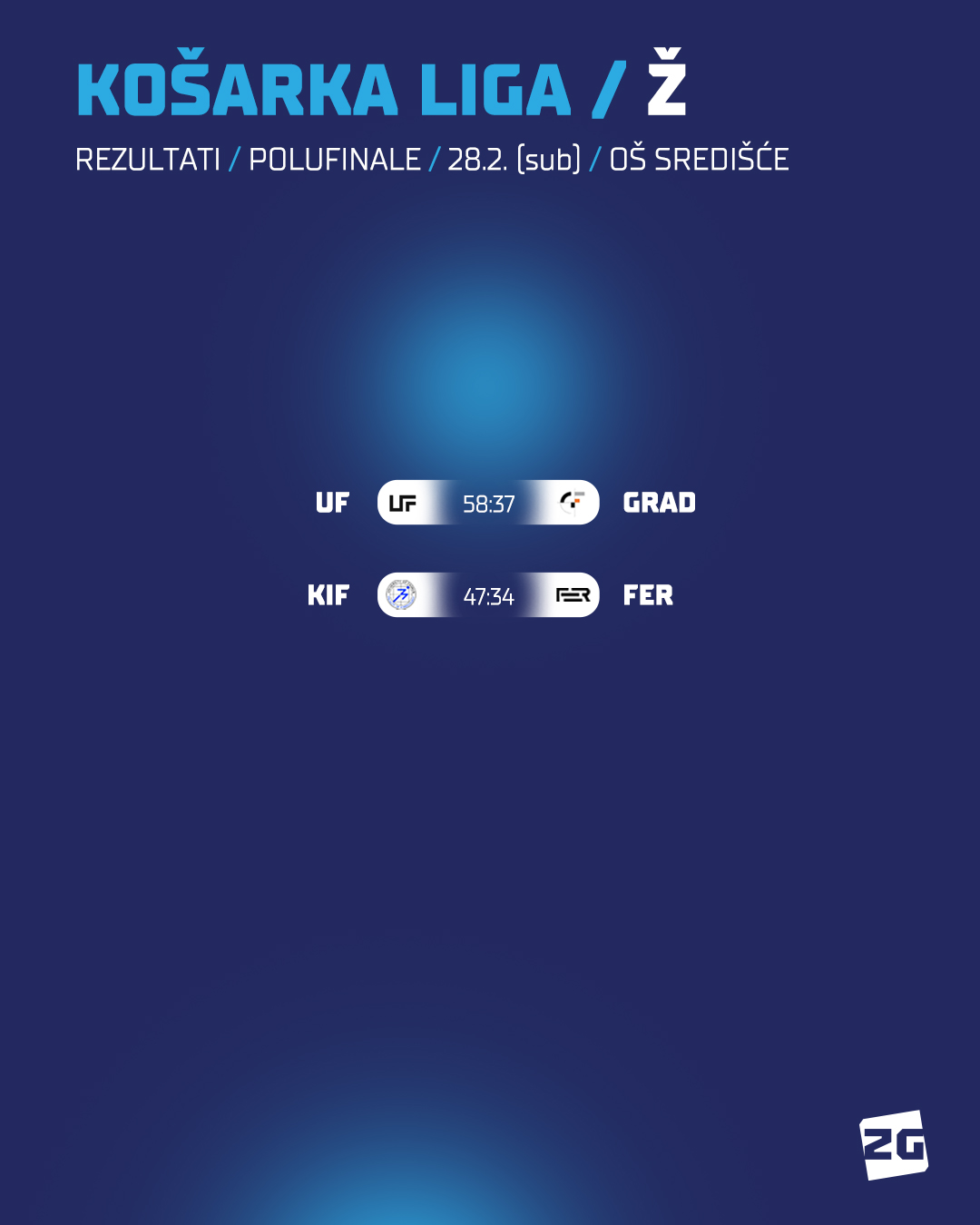 U dvije napete utakmice u ženskoj konkurenciji za finale su se borili Učiteljski fakultet protiv Građevinskog fakulteta i Kineziološki fakultet sa Fakultetom elektrotehnike i računarstva. Zanimljive utakmice prevagnule su u korist ekipa Učiteljskog i Kineziološkog fakulteta, kojima čestitamo na ulasku u finale, dok ćemo ekipe GRAD i FER pratiti u borbi za broncu. Pogledajte rezultate utakmica: