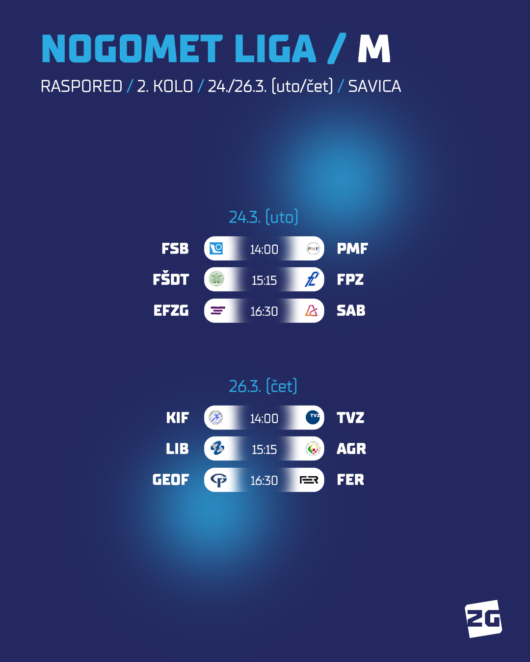 Ponovno ćemo tri nogometne utakmice pratiti u utorak (24.3.), a tri preostale u četvrtak (26.3.) na nogometnom igralištu Savica u poslijepodnevnim terminima.