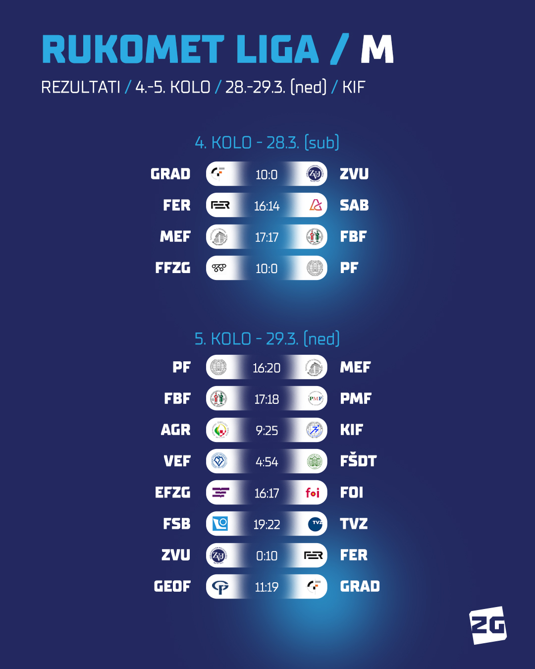 Nastavak 4. kola lige za studente donio nam je pobjedu ekipa GRAD, FER i FFZG, dok su bodove u međusobnom susretu podijelile ekipe MEF i FBF (17-17).
