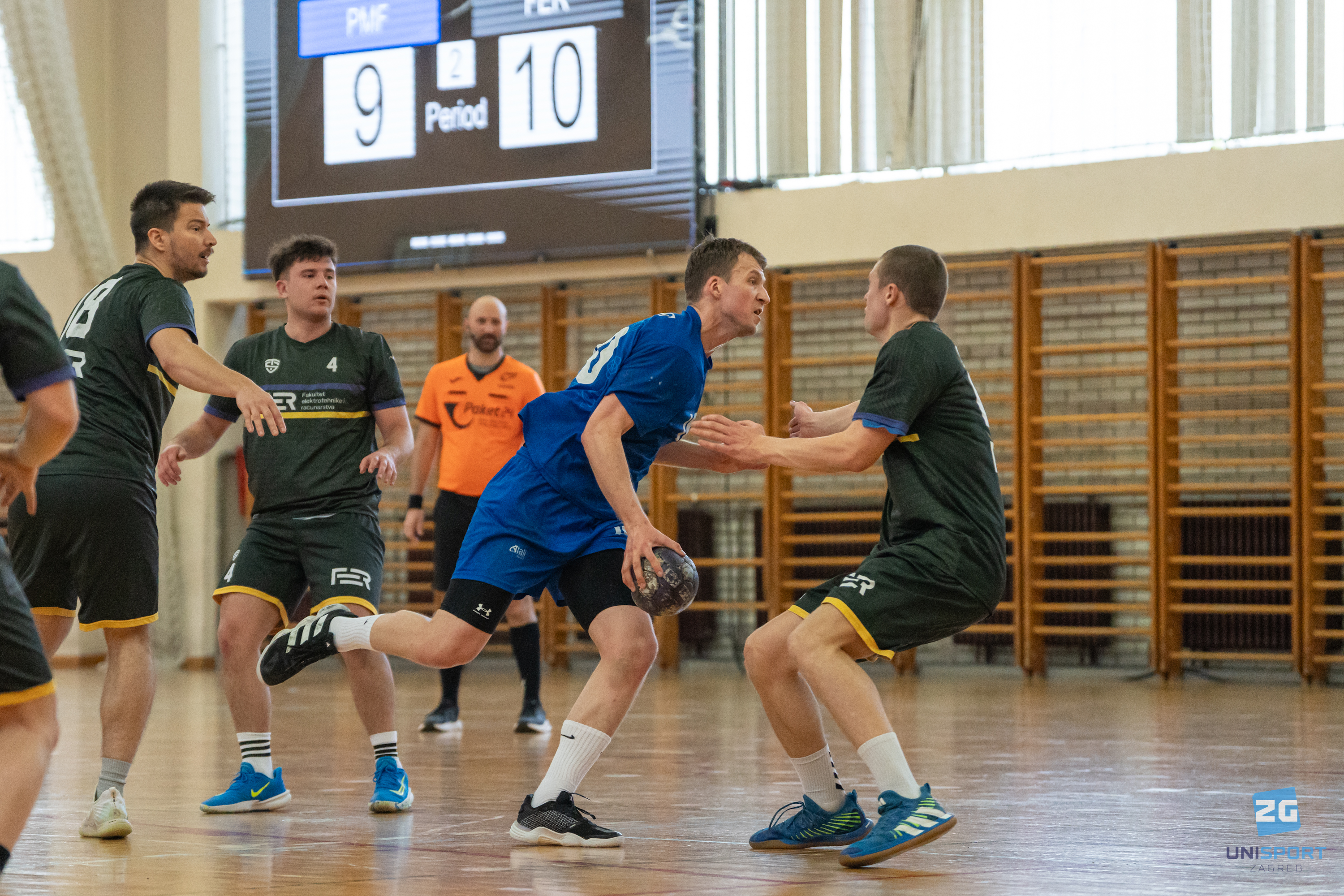 U drugom susretu polufinala susrele su se ekipe PMF-a i FER-a. Prvo poluvrijeme pripalo je ekipi PMF-a koja je u pauzi vodila 7-5. Međutim, u drugom poluvremenu, ekipa FER-a prikazuje sjajnu partiju, od 27. do 32. minute zabijaju 5 uzastopnih pogodaka te okreću susret u svoju korist. Rezultatom 18-13 FER je osigurao finale ovogodišnje lige.